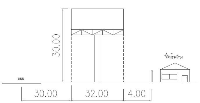 (๒) ป้ายที่ติดตั้งอยู่บนพื้นดินโดยตรง ต้องมีความสูงไม่เกินระยะที่วัดจากจุดที่ติดตั้งป้ายไปจนถึงกึ่งกลาง ถนนสาธารณะที่อยู่ใกล้ป้ายนั้นมากที่สุด และมีความยาวของป้ายไม่เกิน ๓๒ เมตร
